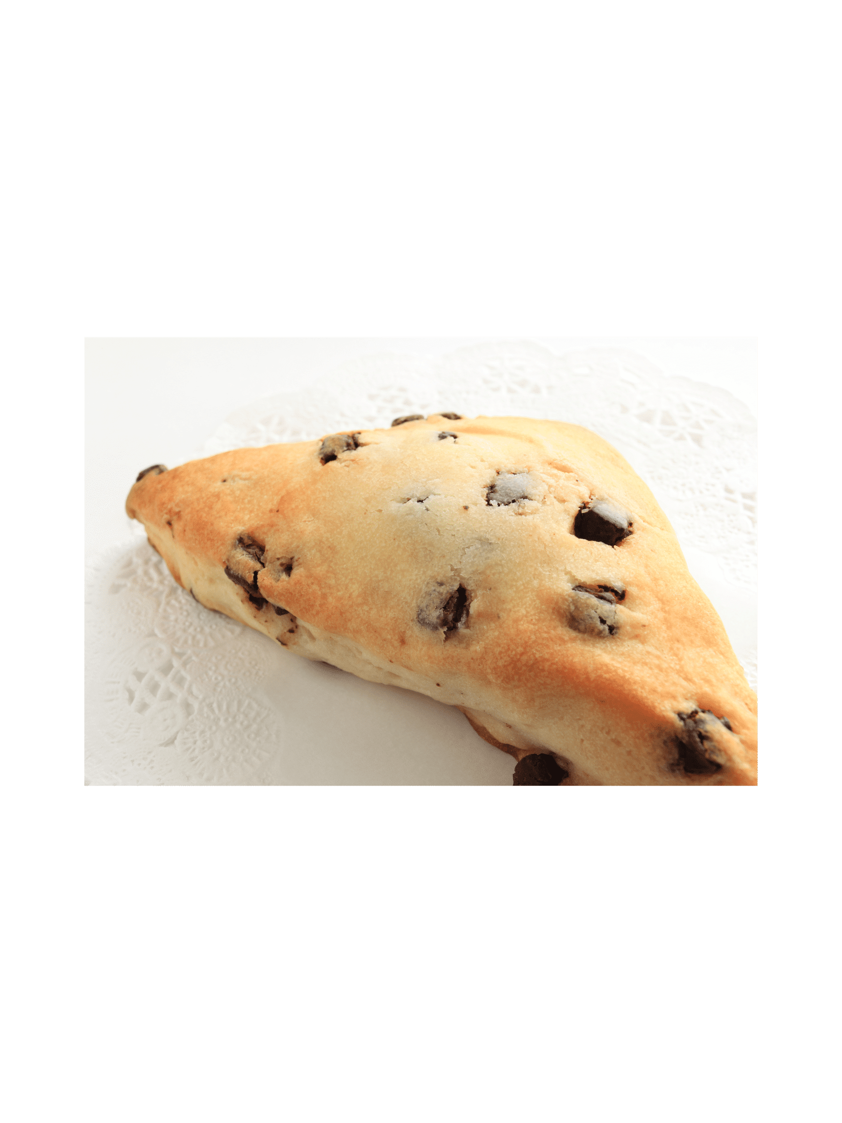 A rich, buttery scone dotted with chunks of smooth chocolate, offering a perfect blend of crumbly texture and indulgent cocoa flavor. Ideal for pairing with coffee or tea, this scone provides a delightful sweet treat for any time of day.
